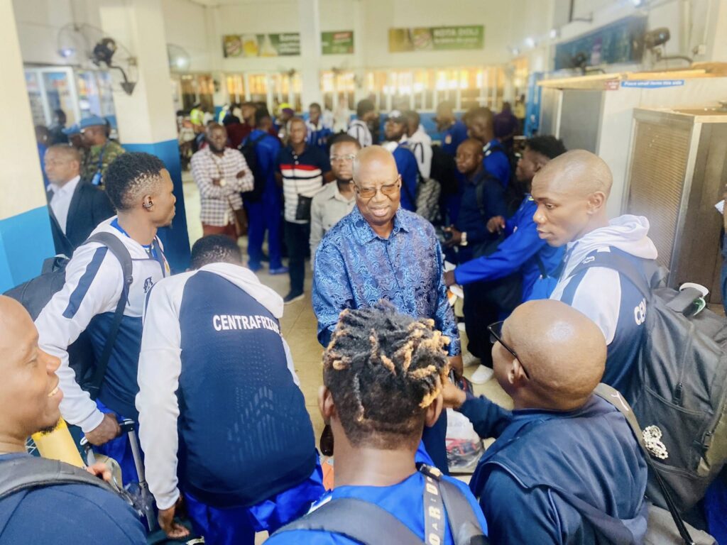 Les Fauves A’ sont de retour ! C’est à 12h35 que leur avion, opéré par Ethiopian Airlines, a touché le sol de l’aéroport de Bangui. À leur descente d’avion, les joueurs ont été accueillis par le président de la Fédération Centrafricaine de Football, Célestin Yanindji. Après cet accueil officiel, l’équipe a été conduite au siège